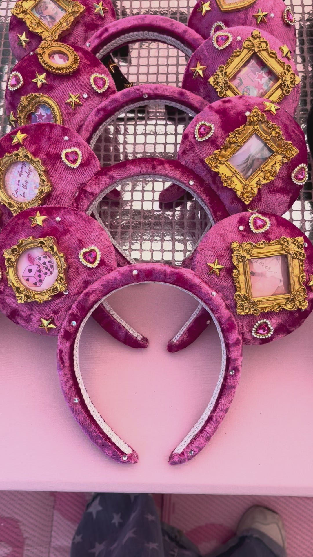 - Gold Stars and Gold/Pink rhinestone hearts decorate ears